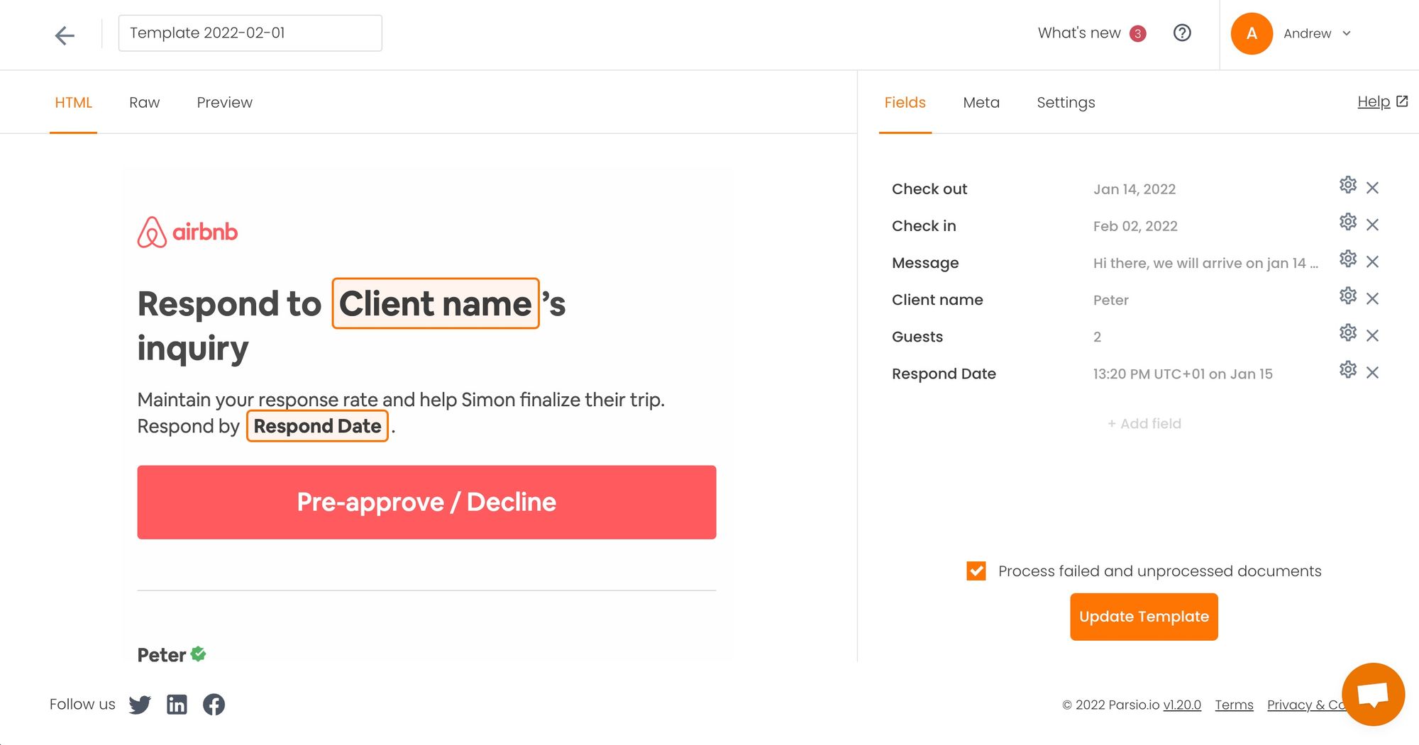 - Now you’ll need to create a template to extract data from your email: just highlight and create data fields, and Parsio will know which specific data you would like to extract. Any new incoming emails will be processed automatically in real time 🚀.