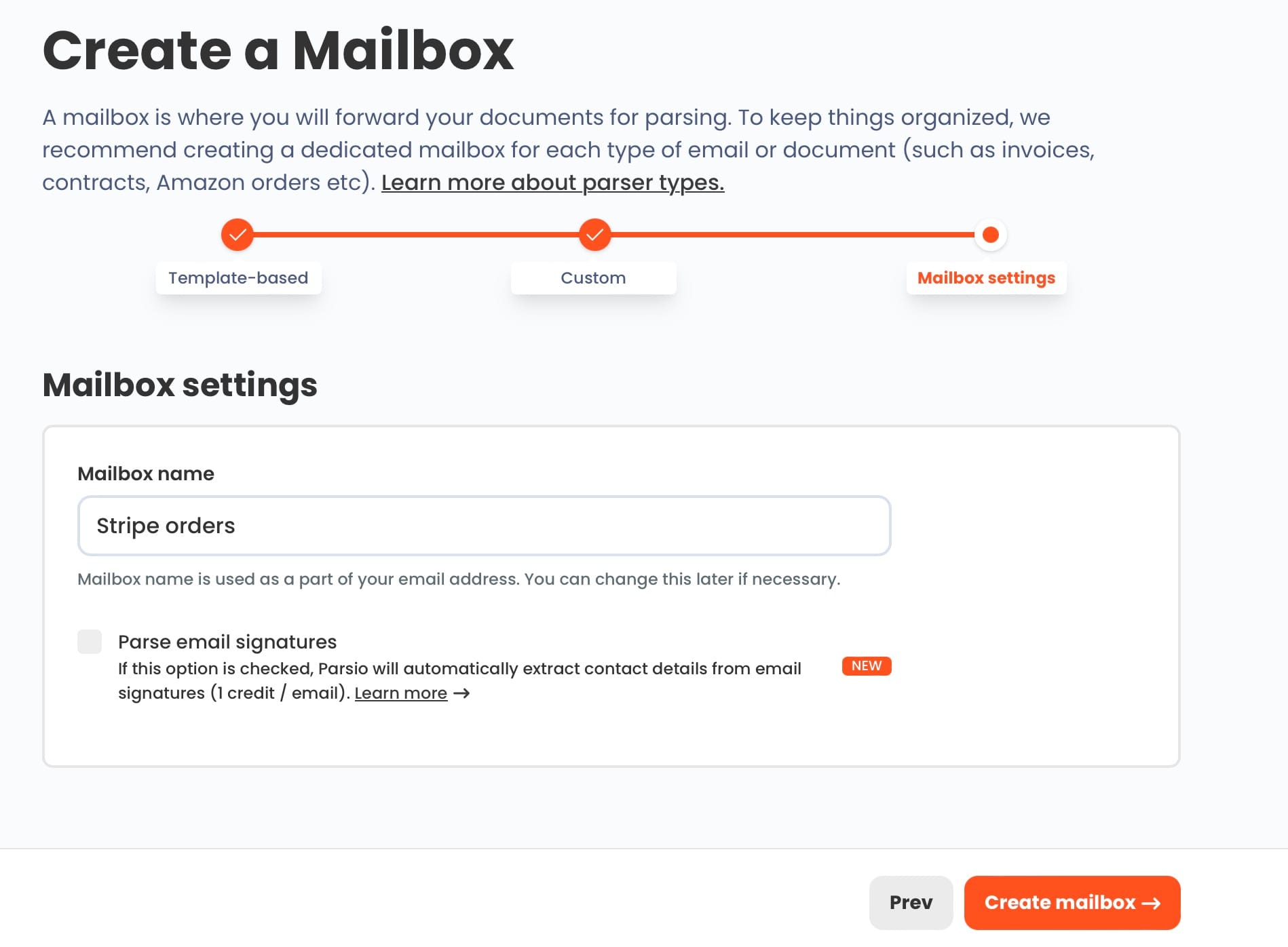 Step 1: Create a Parsio Inbox