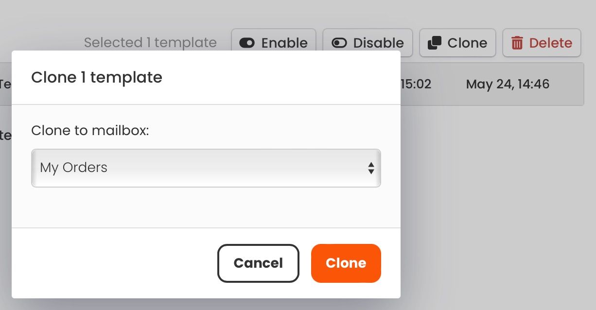 - Clone templates. New feature added: Clone (duplicate) templates between mailboxes.
