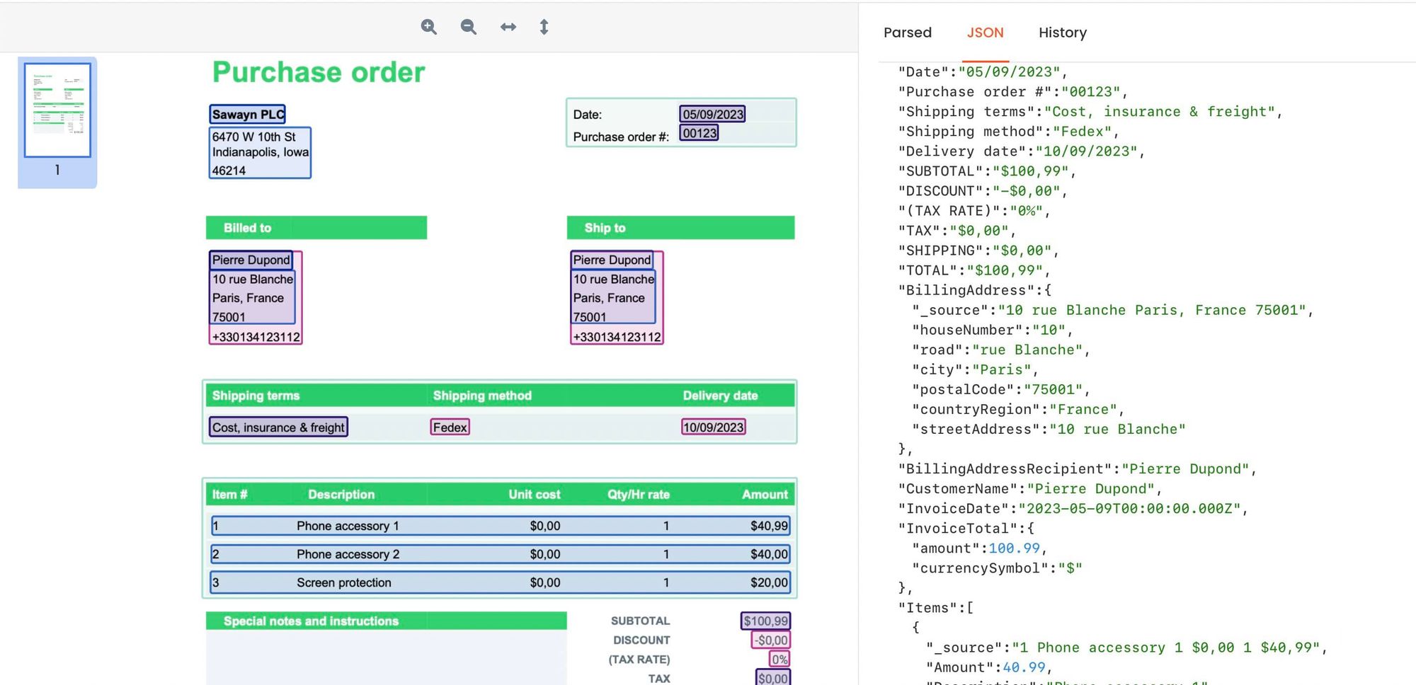 The platform also supports multiple languages, making it an ideal solution for international businesses. Whether your purchase orders are in English, Spanish, French, German, Portuguese, Bulgarian, or any other language, Parsio can extract the necessary data accurately.